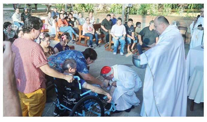 Con motivo del Jueves Santo y recordando el gesto de servicio de Jesús en la Última Cena, el cardenal Adalberto Martínez Flores, arzobispo metropolitano de Asunción, presidió la misa y el rito del Lavatorio de los Pies en el Pequeño Cottolengo –centro que alberga a personas con discapacidad–, como parte de su visita pastoral.
